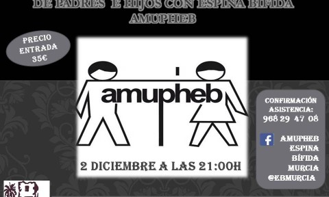 Acompáñanos en nuestra vigésimo primera cena benéfica La asociación Murciana de Padres e Hijos con Espina bífida (Amupheb) realiza su gala anual con el objetivo de reconocer con una entrega de premios ,el trabajo y el apoyo de entidades y personas que colaboran con nuestra causa ,la plena integración y la mejora de la calidad